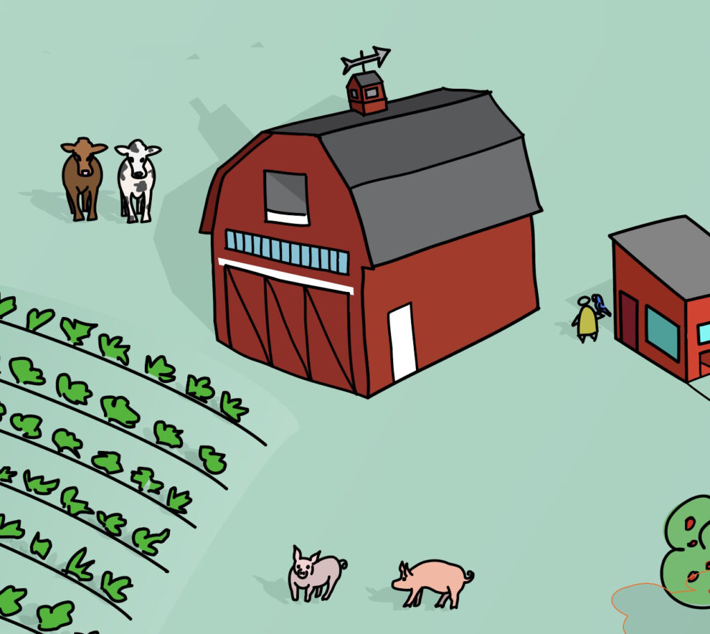 The Farm is where you'll learn about growing food and raising animals that are part of our food system, sustainability, hydroponics, bees and pollination, and other important areas about how we get our food and how we can help make our food system better for us and the planet.
